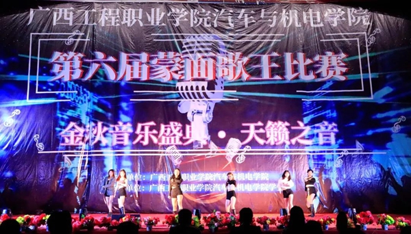 2020年11月12日晚,我校汽車(chē)與機(jī)電學(xué)院第六屆“蒙面歌王”決賽在體育館舉行,學(xué)校副校長(zhǎng)彭高彬、汽車(chē)與機(jī)電學(xué)院副院長(zhǎng)韋永驍、平果市視界新媒體科技有限公司董事長(zhǎng)徐明扣等領(lǐng)導(dǎo)嘉賓出席了本次活動(dòng)。蔣鳳鳳、覃海梅、王大冠等老師擔(dān)任比賽評(píng)委。
