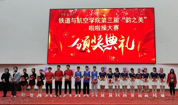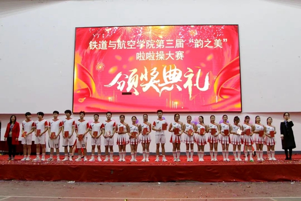 為豐富校園文化,不斷提高同學(xué)們的綜合素質(zhì),營造和諧向上的校園文化氛圍,我校鐵道與航空學(xué)院于2020年12月25日在體育館舉辦第三屆“韻之美”大學(xué)生啦啦操比賽。學(xué)校副校長彭高彬,鐵道與航空學(xué)院副院長覃清香、辦公室主任羅丹出席本次大賽。學(xué)工處副處長吳發(fā)德,形體課專業(yè)教師謝錫潔、王珺珊、梁永艷等7位老師應(yīng)邀擔(dān)任大賽評(píng)委。本次啦啦操大賽的參賽隊(duì)員主要來自鐵道與航空學(xué)院和教育學(xué)院的11支隊(duì)伍。