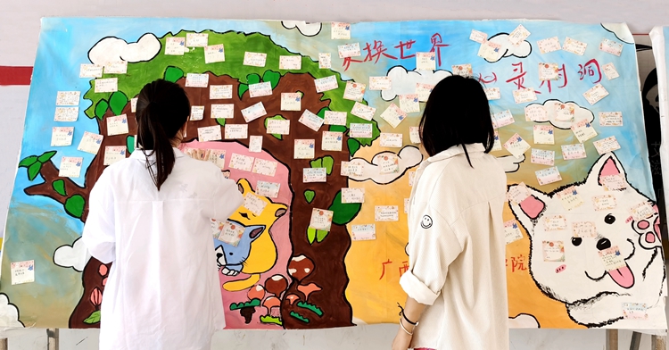 活動開始,參與的同學(xué)們在活動現(xiàn)場領(lǐng)取便簽,并寫下對自己的祝福、對他人的祝?;蛘咦约旱臒?,比如自己生活、學(xué)習(xí)中遇到的問題、困惑、迷茫等,粘貼在展板上。