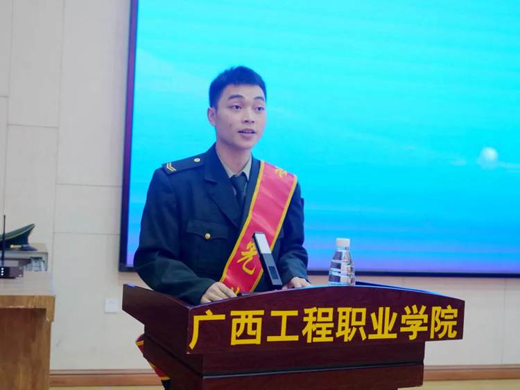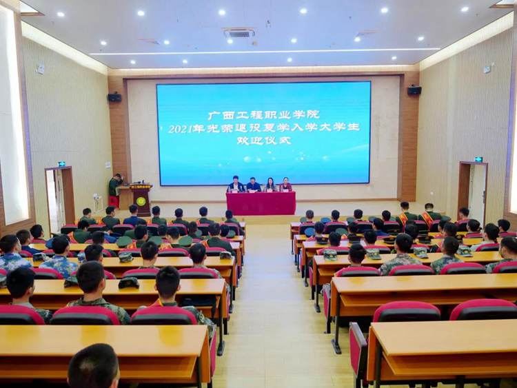 11月11日下午,廣西工程職業(yè)學(xué)院在圖文信息大樓報告廳舉行2021年度光榮退役復(fù)學(xué)入學(xué)大學(xué)生歡迎儀式。學(xué)校副校長黃德偉副教授,校長助理黃秋霞及部分二級學(xué)院負(fù)責(zé)人出席儀式,2021年度退役復(fù)學(xué)入學(xué)大學(xué)生以及軍事協(xié)會學(xué)生代表參加了會議。保衛(wèi)處副處長、征兵工作站負(fù)責(zé)人李捷主持會議。