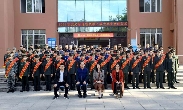 儀式結(jié)束,學(xué)校副校長黃德偉副教授,校長助理黃秋霞及相關(guān)與會領(lǐng)導(dǎo)和退役復(fù)學(xué)入學(xué)同學(xué)合影留念。
