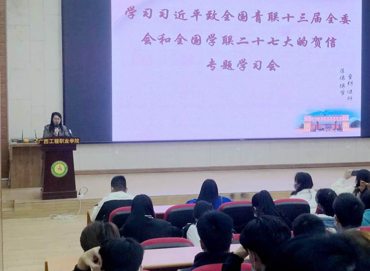 在學(xué)習(xí)習(xí)近平致全國青聯(lián)十三屆全委會和全國學(xué)聯(lián)二十七大的賀信專題學(xué)習(xí)會上,黃秋霞助理要求全體青年學(xué)生要認(rèn)真學(xué)習(xí)好習(xí)近平總書記賀信精神,深刻認(rèn)識青聯(lián)和學(xué)聯(lián)的光榮歷史和時代使命,樹立對馬克思主義的信仰,堅定社會主義信念,進(jìn)一步弘揚(yáng)愛國、團(tuán)結(jié)、跟黨走的光榮傳統(tǒng),勇?lián)鷼v史職責(zé),團(tuán)結(jié)同學(xué),創(chuàng)新工作,努力學(xué)習(xí),爭當(dāng)先進(jìn),奮發(fā)向上,成長為中國特色社會主義事業(yè)的合格建設(shè)者和接班人。