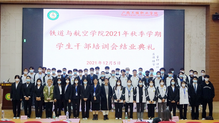 2021年秋季學(xué)期“明責(zé)任•增才干•做精英干部”培訓(xùn)班培訓(xùn)結(jié)束后,鐵道與航空學(xué)院舉行了結(jié)業(yè)典禮,出席典禮的老師為參訓(xùn)學(xué)生干部代表頒發(fā)了結(jié)業(yè)證書。