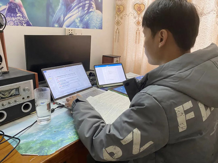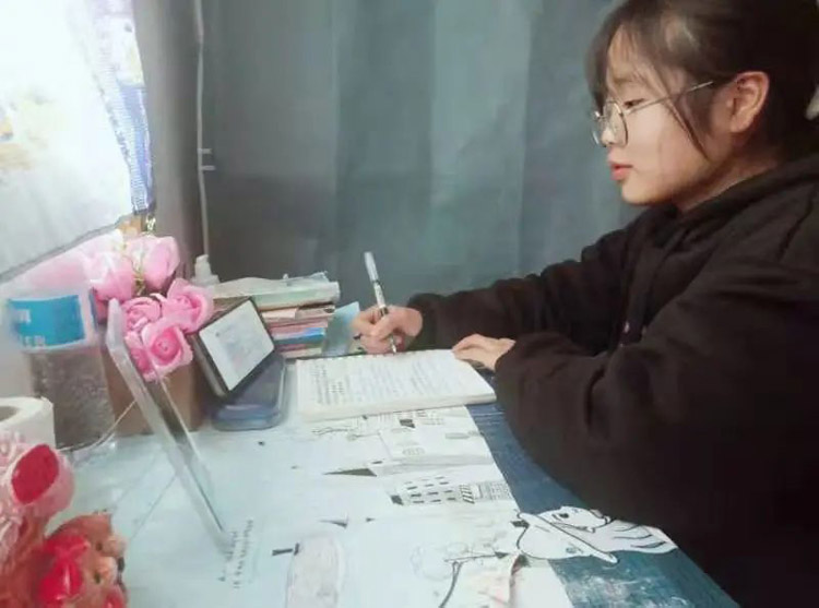 居家認(rèn)真上網(wǎng)課的同學(xué)們