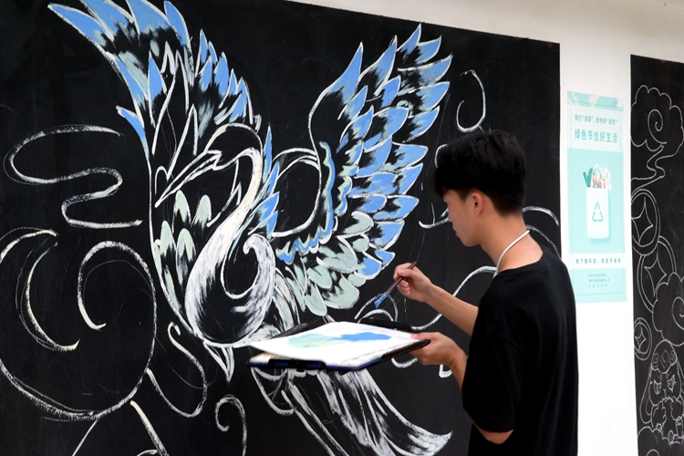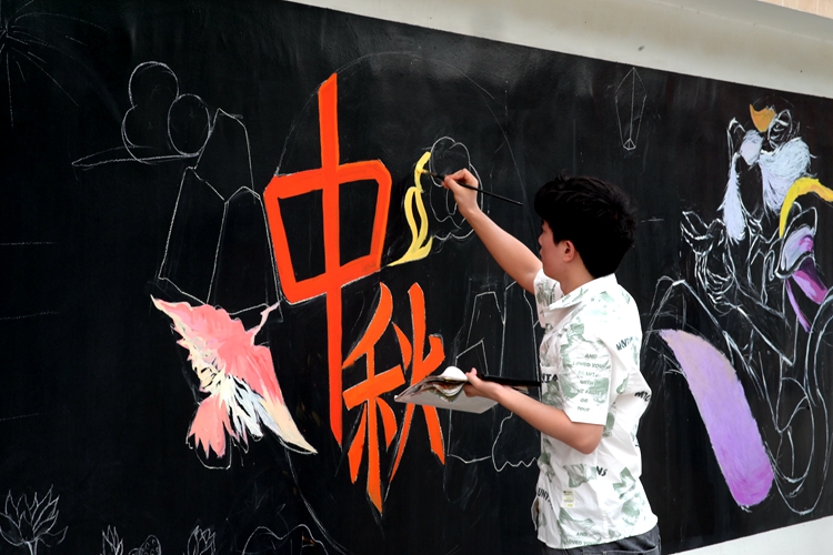 活動(dòng)中,各班級(jí)的同學(xué)們充分發(fā)揮自己的想象力和團(tuán)結(jié)合作的精神,把對(duì)中秋的節(jié)日祝福和對(duì)新生、新學(xué)期的美好祝愿,用一筆一劃勾勒在黑板上。