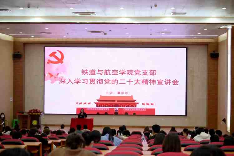 覃鳳姣書記緊扣黨的二十大報告原文,從三個方面對黨的二十大精神開展宣講,并結(jié)合鐵道與航空學(xué)院工作實(shí)際進(jìn)行闡釋,號召學(xué)院廣大黨員干部師生迅速興起學(xué)習(xí)宣傳貫徹黨的二十大精神的熱潮。