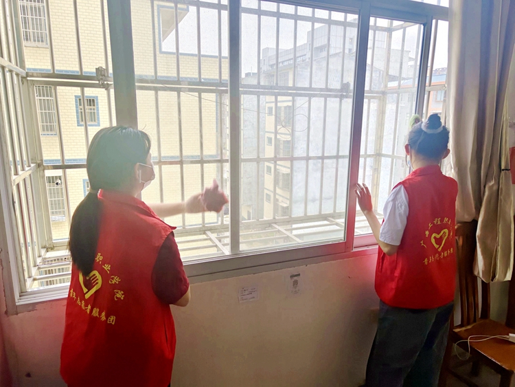 在吉福敬老院,一部分志愿者陪伴腿腳不便的老人出門散步,沐浴陽光,了解他們的日常生活情況及身體狀況。另一部分志愿者到老爺爺、老奶奶的宿舍,開展整理內(nèi)務(wù)打掃衛(wèi)生等義務(wù)勞動。他們認(rèn)真負(fù)責(zé)的態(tài)度贏得了養(yǎng)老院爺爺奶奶和工作人員的好評。