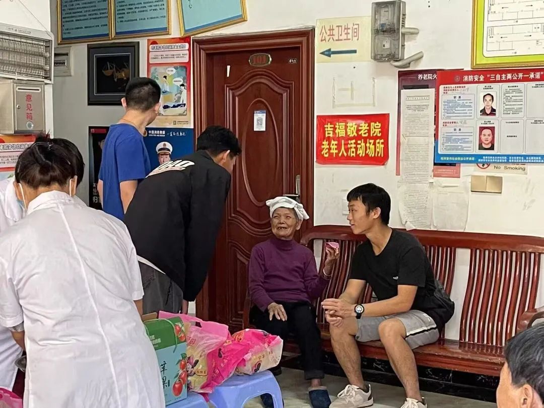 與老人親切交談,噓寒問暖