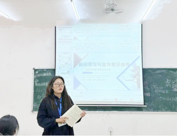 盧海娟老師作題為《新聞撰寫(xiě)與宣傳意識(shí)》的專(zhuān)題培訓(xùn)。盧海娟老師講到嚴(yán)謹(jǐn)?shù)墓ぷ髯黠L(fēng)是學(xué)生干部所需具備的重要素質(zhì),它體現(xiàn)在新聞撰寫(xiě)與宣傳的各個(gè)方面。從發(fā)掘新聞亮點(diǎn)和采訪過(guò)程中,鍛煉、提高學(xué)生干部的信息敏感性,增強(qiáng)學(xué)生干部的新聞宣傳意識(shí),從中培養(yǎng)其比較分析能力、汲取營(yíng)養(yǎng)和新聞撰寫(xiě)能力。
