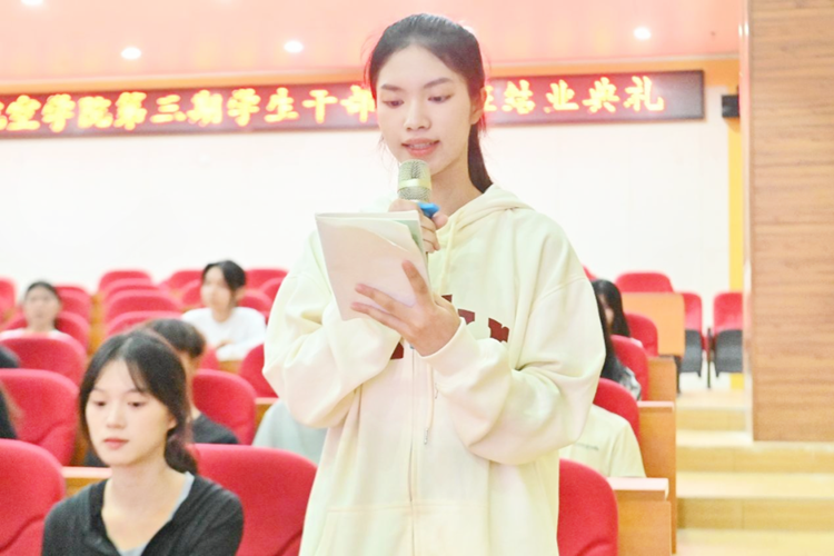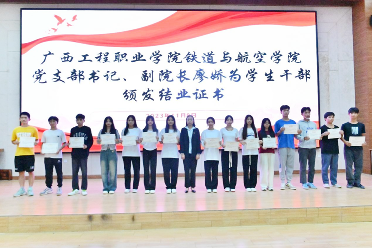 黨支部書(shū)記、副院長(zhǎng)廖嬌為學(xué)生干部頒發(fā)結(jié)業(yè)證書(shū)