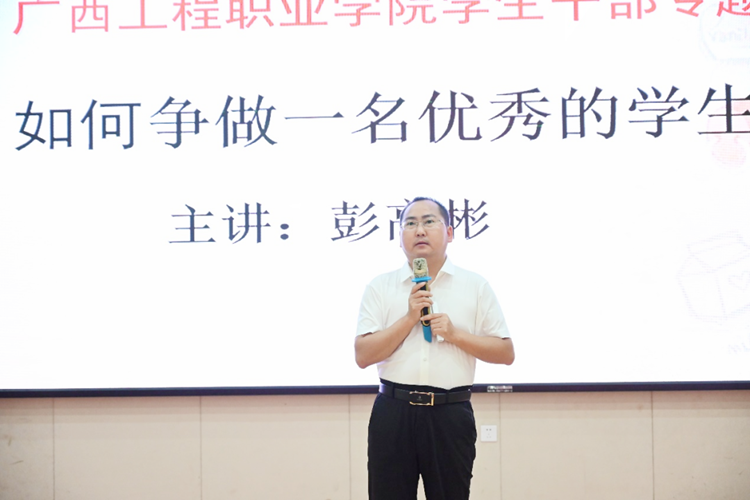 紀(jì)委書(shū)記、副校長(zhǎng)彭高彬副教授作題為《如何做一名優(yōu)秀的學(xué)生干部》的專(zhuān)題培訓(xùn)。彭高彬副校長(zhǎng)在培訓(xùn)中指出學(xué)生干部要明確自己的角色和定位,學(xué)生干部首先是學(xué)生,其次是干部,最后是學(xué)生干部。強(qiáng)調(diào)全體學(xué)生干部要正確理解“學(xué)生干部”的內(nèi)涵和明確“學(xué)生干部”角色定位,牢固樹(shù)立為同學(xué)服務(wù)、為班級(jí)服務(wù)、為二級(jí)學(xué)院服務(wù)和為學(xué)校服務(wù)的理念,增強(qiáng)公仆意識(shí)、開(kāi)拓意識(shí)、參與意識(shí),工作中做到“三性”(主動(dòng)性、積極性、創(chuàng)造性) ,“三高”(高標(biāo)準(zhǔn)、高要求、高效率) ,“三心”(忠心、細(xì)心、耐心),充分發(fā)揮模范帶頭、橋梁紐帶作用,爭(zhēng)做學(xué)習(xí)的楷模、守紀(jì)的楷模、鍛煉身體的楷模和參加學(xué)校各項(xiàng)活動(dòng)的楷模。