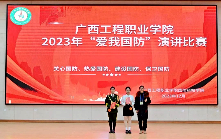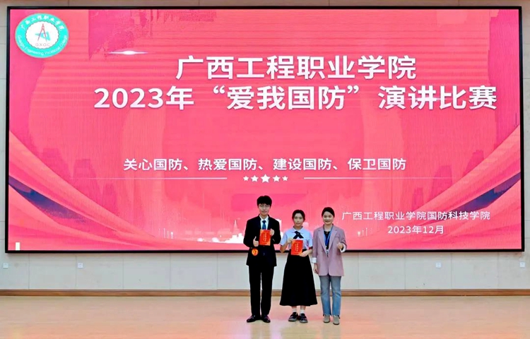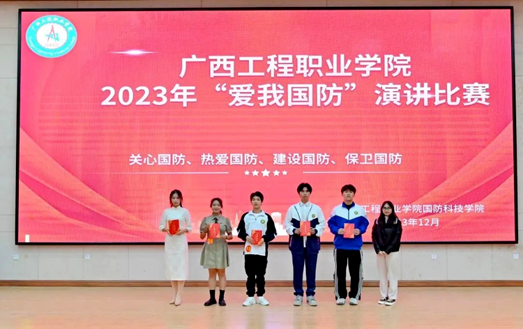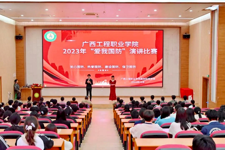 為深入學(xué)習(xí)貫徹習(xí)近平新時(shí)代中國(guó)特色社會(huì)主義思想和黨的二十大精神,認(rèn)真學(xué)習(xí)貫徹習(xí)近平總書記關(guān)于加強(qiáng)全民國(guó)防教育的重要論述,全面貫徹落實(shí)習(xí)近平總書記對(duì)廣西“五個(gè)更大”重要要求、視察廣西“4·27”重要講話和對(duì)廣西工作系列重要指示精神,進(jìn)一步在全社會(huì)營(yíng)造關(guān)心國(guó)防、熱愛(ài)國(guó)防、建設(shè)國(guó)防、保衛(wèi)國(guó)防的濃厚氛圍。12月12日,廣西工程職業(yè)學(xué)院在圖文信息大樓一樓學(xué)術(shù)報(bào)告廳舉行2023年“愛(ài)我國(guó)防”演講比賽。比賽由國(guó)防科技學(xué)院承辦。章昊、梁思媛同學(xué)主持比賽。