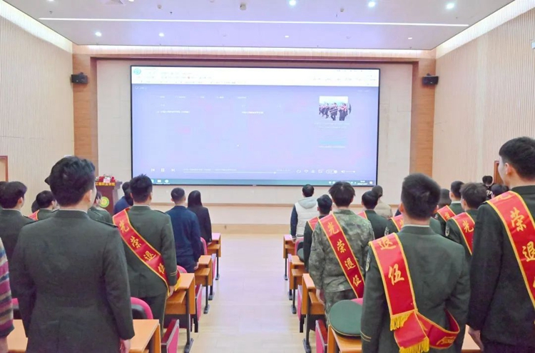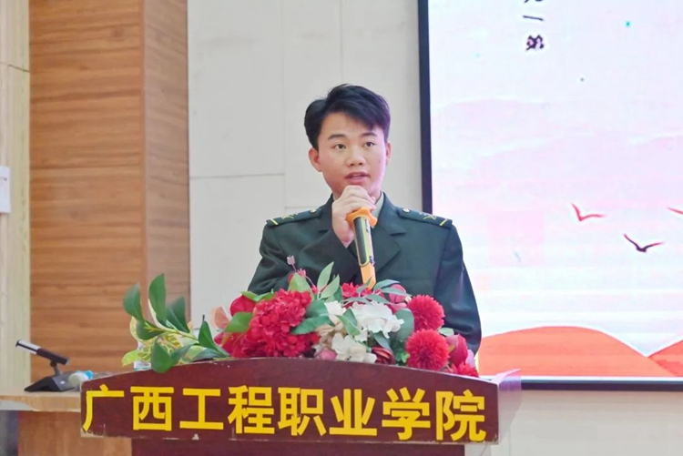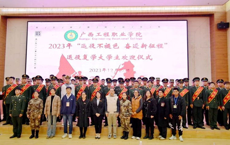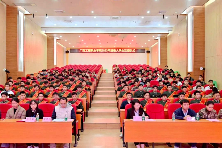 為深入學(xué)習(xí)貫徹習(xí)近平新時(shí)代中國(guó)特色社會(huì)主義思想,進(jìn)一步加強(qiáng)退役大學(xué)生思想政治引領(lǐng),大力弘揚(yáng)家國(guó)情懷,培育和踐行社會(huì)主義核心價(jià)值觀,鼓勵(lì)退役復(fù)學(xué)大學(xué)生繼承和發(fā)揚(yáng)軍人優(yōu)良傳統(tǒng),為學(xué)校高質(zhì)量發(fā)展貢獻(xiàn)青春、智慧和力量,同時(shí)激發(fā)學(xué)校師生擁軍愛(ài)軍的國(guó)防意識(shí),更好地為退役復(fù)學(xué)學(xué)生成長(zhǎng)成才保駕護(hù)航,12月27日,廣西工程職業(yè)學(xué)院在圖文信息大樓一樓學(xué)術(shù)報(bào)告廳舉行2023年退役復(fù)學(xué)大學(xué)生歡迎儀式。