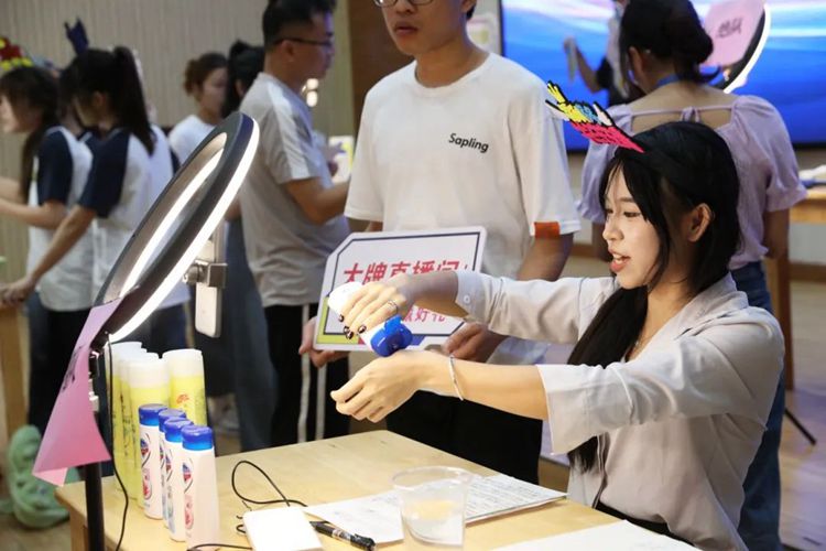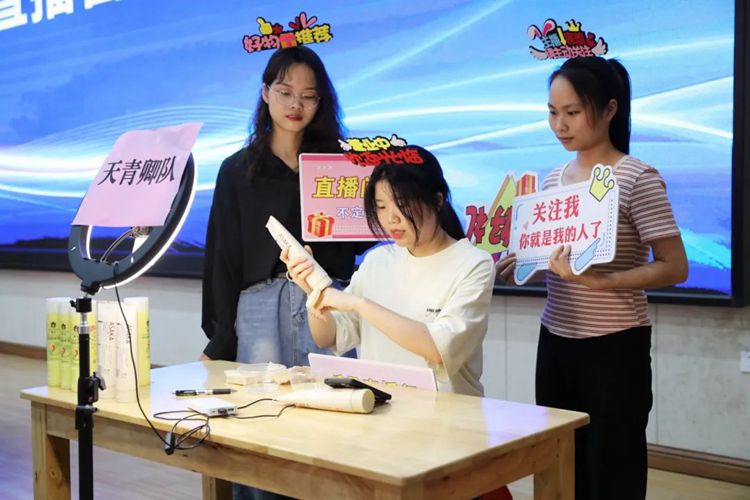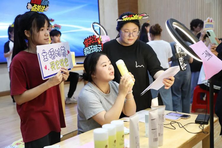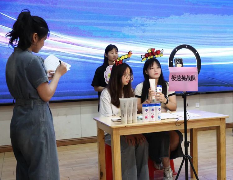 直播營(yíng)銷賽項(xiàng)主要考察參賽選手運(yùn)用互聯(lián)網(wǎng)思維的直播策劃能力、商品推銷能力、臨場(chǎng)應(yīng)變能力等綜合技能。同學(xué)們?cè)诒荣愔凶孕艔娜?,能說(shuō)會(huì)道,盡顯主播風(fēng)采,充分展示出扎實(shí)過(guò)硬的專業(yè)技能。