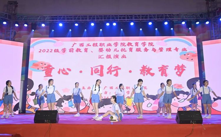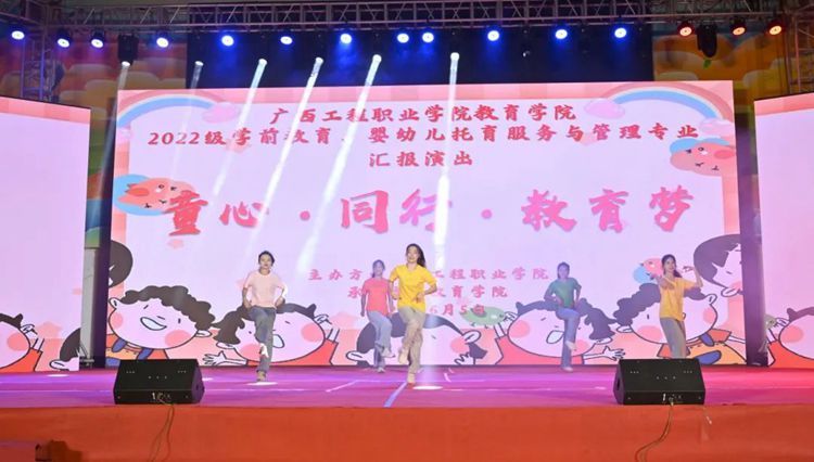 2024年6月5日,我校教育學(xué)院在體育館開展以“童心·同行·教育夢(mèng)”為主題的2022級(jí)學(xué)前教育、嬰幼兒托育服務(wù)與管理專業(yè)匯報(bào)演出。