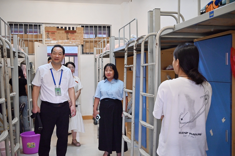 圖為學校領(lǐng)導(dǎo)到學生公寓與新生親切交流