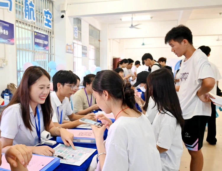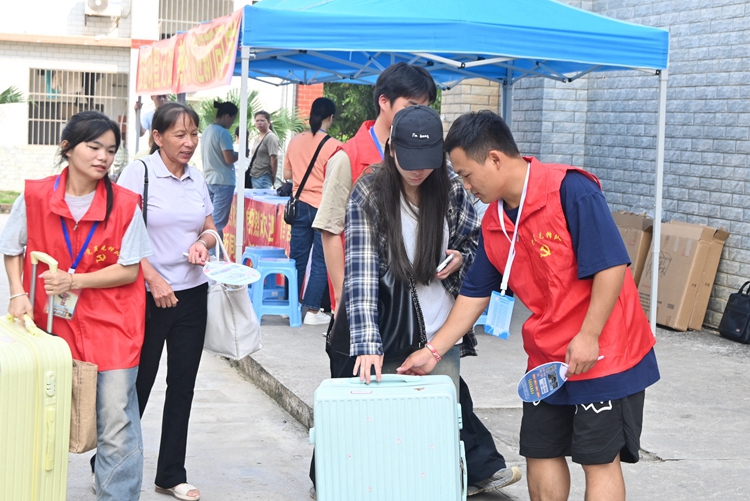 圖為志愿者們熱心服務(wù)新生及家長