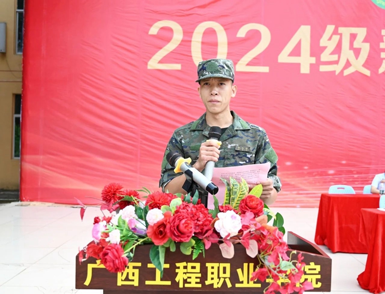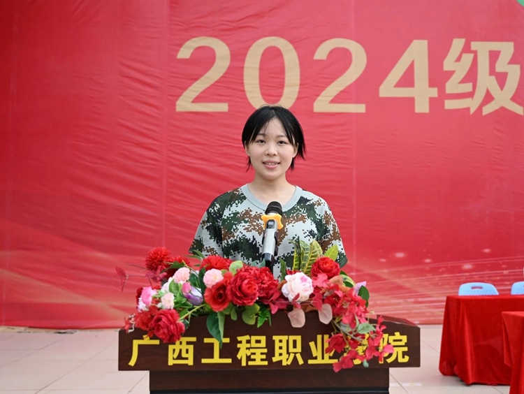 2024級(jí)新生代表鐵道與航空學(xué)院高速鐵路客運(yùn)服務(wù)專業(yè)黃覃晴同學(xué)發(fā)言。她代表全體新生承諾在軍訓(xùn)中努力做到服從命令,聽從指揮;鍛煉意志,苦練基本功;發(fā)揚(yáng)軍訓(xùn)作風(fēng),培養(yǎng)優(yōu)良品格。同時(shí),號(hào)召全體同學(xué)把在軍訓(xùn)期間養(yǎng)成的良好品德和作風(fēng)帶到今后的學(xué)習(xí)中去,高標(biāo)準(zhǔn)、嚴(yán)要求規(guī)范自己的言行,遵守學(xué)校的各項(xiàng)規(guī)章制度,踏實(shí)做人、刻苦學(xué)習(xí),力爭(zhēng)在新的起跑線上步伐整齊,一同前進(jìn),成為一名德智體美勞全面發(fā)展的大學(xué)生。