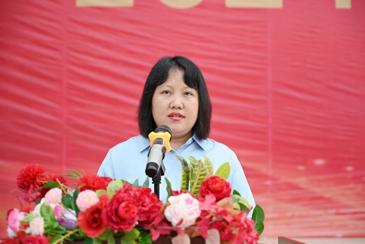 圖為黨委副書記、校長(zhǎng)羅艷妮講話