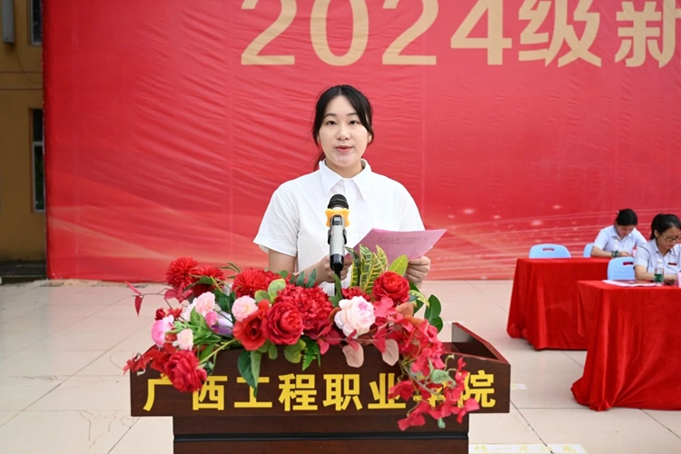 圖為2024級(jí)新生代表黃覃晴同學(xué)發(fā)言