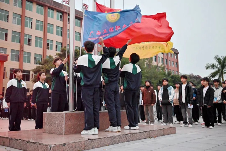 12月9日上午7:20,學(xué)校在魯班廣場舉行2024年憲法宣傳周升旗儀式暨國旗下的思政課。副校長蔣茂麗、黨委宣傳部部長黃麗娟、法務(wù)部部長盧保日及相關(guān)部門負責(zé)人出席儀式。儀式由經(jīng)濟管理學(xué)院黨支部書記、院長覃清香主持。教師代表及2024級新生、2023級學(xué)生代表參加升旗儀式。