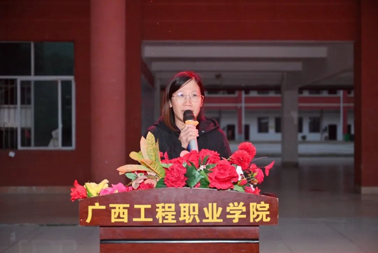 圖為經(jīng)濟管理學(xué)院黨支部書記、院長覃清香主持儀式