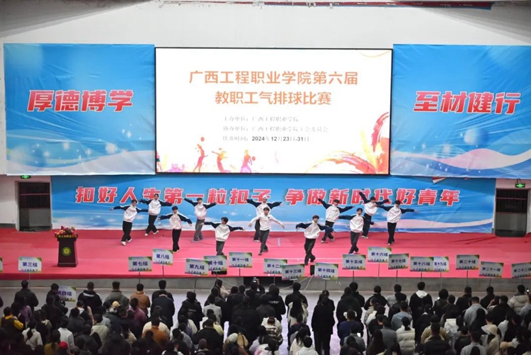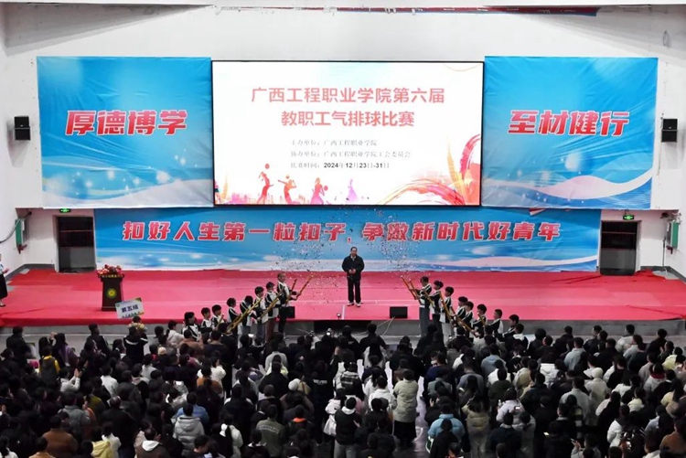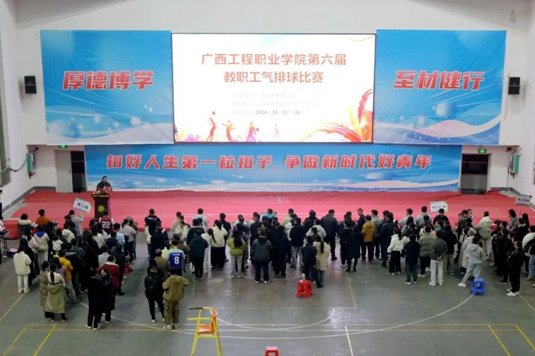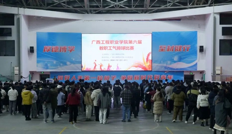 2024年12月23日19時,廣西工程職業(yè)學(xué)院第六屆教職工氣排球比賽開幕式在體育館舉行。