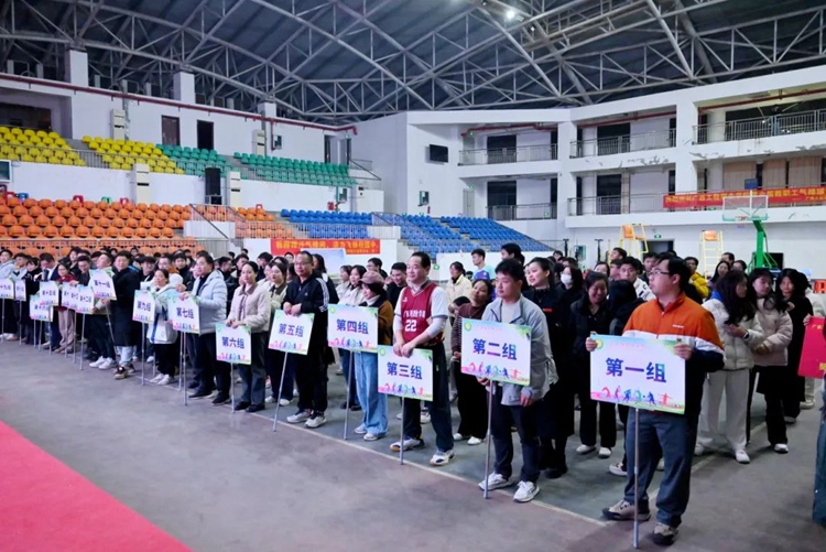 圖為第六屆教職工氣排球開幕式現(xiàn)場
