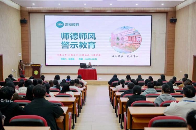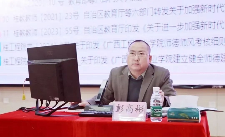 紀委書記、副校長彭高彬作題為《師德師風警示教育》的專題培訓。他主要從新時代的師德師風建設、違反師德師風的具體表現(xiàn)、違反師德師風的典型案例、典型案例的警示教育意義和做“四有”好老師當育人大先生這五個方面進行培訓,強調(diào)全體教師一要嚴格遵守《新時代高校教師職業(yè)行為十項準則》,牢固樹立底線意識,切實增強遵守師德準則的思想覺悟和行動自覺;二要不斷提高自身的專業(yè)素養(yǎng)和師德修養(yǎng),爭做“四有”好老師,當育人大先生,切實擔負起為黨育人、為國育才的使命;三要以案為鑒,汲取教訓,警鐘長鳴,始終堅守教師的職業(yè)道德規(guī)范,嚴守師德底線,絕不觸碰“紅線”,堅決杜絕出現(xiàn)任何師德失范行為。