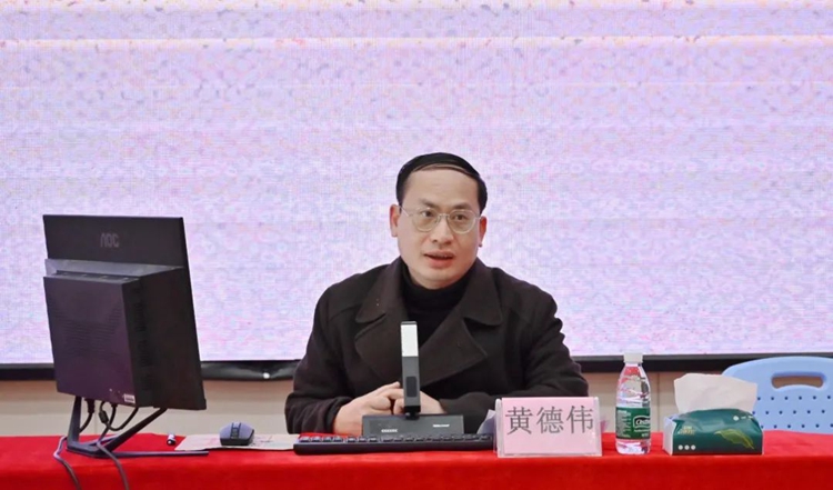 圖為副校長黃德偉作題為《做好課堂育德工作,培育德才兼?zhèn)淙瞬拧穼n}培訓