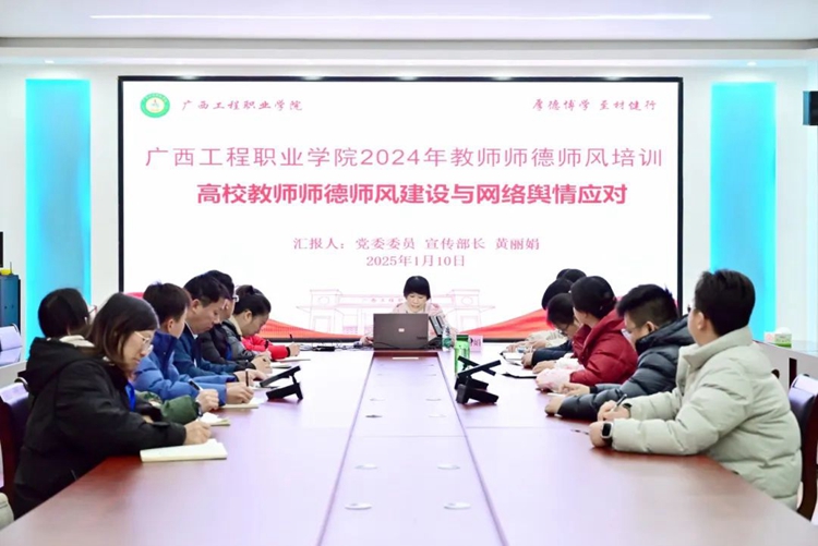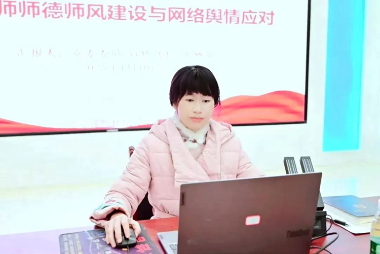 黨委宣傳部部長黃麗娟作高校教師師德師風建設與網(wǎng)絡輿情應對專題培訓,她主要從全媒體時代高校網(wǎng)絡輿情傳播的特點、高校網(wǎng)絡輿情的主要類型、高校師德失范輿情應對策略等三個方面,結合典型案例分析和工作實踐,做了深入指導。要求各部門要嚴格落實意識形態(tài)工作責任制,增強底線思維,繃緊風險防范意識,不斷提升化解風險能力和意識形態(tài)工作本領,確保意識形態(tài)安全,構建安全穩(wěn)定的校園環(huán)境。