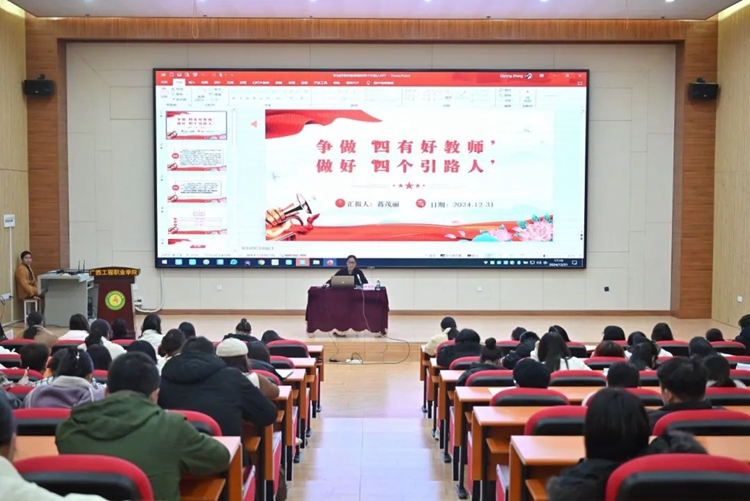 副校長蔣茂麗作題為《大力弘揚教育家精神》和《爭做“四有好教師”,做好“四個引路人”》的專題培訓。她要求全體教師要深刻把握教育家精神的內(nèi)涵要義,大力弘揚教育家精神,涵養(yǎng)高尚師德師風,依法履行教師職責,對標新時代高校教師職業(yè)行為十項準則,不斷充實、提升自己,增強責任意識、服務意識,爭做“四有好老師”,做好“四個引路人”,踐行“四個相統(tǒng)一”,努力成為“經(jīng)師”與“人師”相統(tǒng)一的大先生,培養(yǎng)堪當民族復興重任的時代新人,共同推動學校高質量發(fā)展,為強國建設民族復興偉業(yè)作出新的更大貢獻。