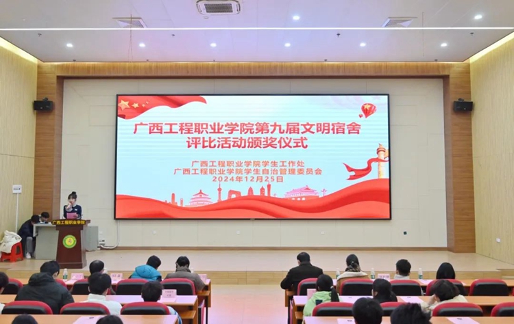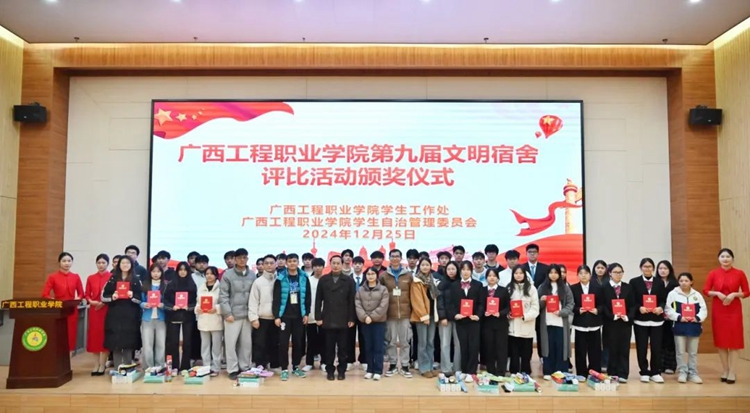 為進(jìn)一步加強(qiáng)宿舍文化建設(shè),培養(yǎng)學(xué)生的良好生活習(xí)慣,創(chuàng)建溫馨的生活環(huán)境,2024年12月25日,學(xué)校在圖文信息大樓三樓學(xué)術(shù)報告廳舉行第九屆文明宿舍評比活動頒獎儀式。