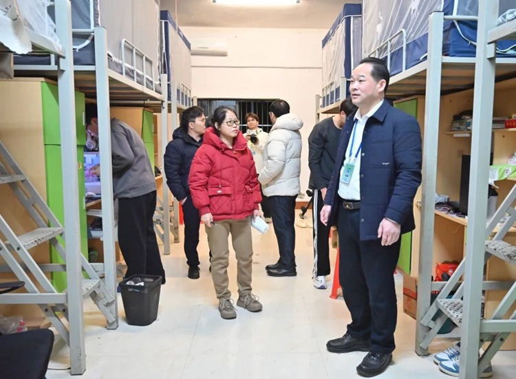 新年伊始,春意盎然。為及時深入了解學(xué)生返校后的學(xué)習(xí)生活情況,加強宿舍文明建設(shè),我校黨委書記、督導(dǎo)專員蒙本曼,副校長黃德偉,學(xué)生工作處、二級學(xué)院負責(zé)人深入學(xué)生宿舍開展走訪慰問活動。