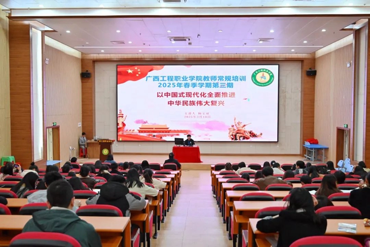 3月11日下午,廣西工程職業(yè)學院在圖文信息大樓一樓報告廳舉行“以中國式現(xiàn)代化全面推進中華民族偉大復興”專題培訓。此次培訓為我校2025年春季學期第三期教師常規(guī)培訓,由馬克思主義學院楊文雙老師主講,全體教職工參加了培訓。