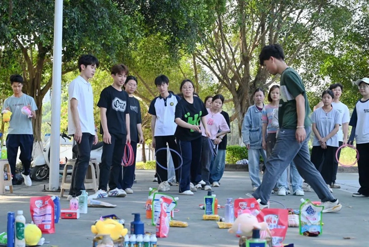 除了旱地龍舟、擊鼓傳花這兩個傳統(tǒng)的集體競賽項目,新增的“好運套圈圈”環(huán)節(jié)備受歡迎。師生們手持圈圈,站在指定區(qū)域,目光專注地瞄準前方擺放的各類精美獎品。老師和同學(xué)們有的技巧嫻熟,輕輕一拋,圈圈便穩(wěn)穩(wěn)地套中了心儀的獎品;有的則稍顯生疏,但在不斷嘗試中也逐漸掌握了訣竅?,F(xiàn)場不時傳來成功套中獎品的歡呼聲,大家臉上都洋溢著開心的笑容。套圈圈項目充滿了趣味性和互動性,讓師生們在游戲中放松身心,享受成功帶來的喜悅。
