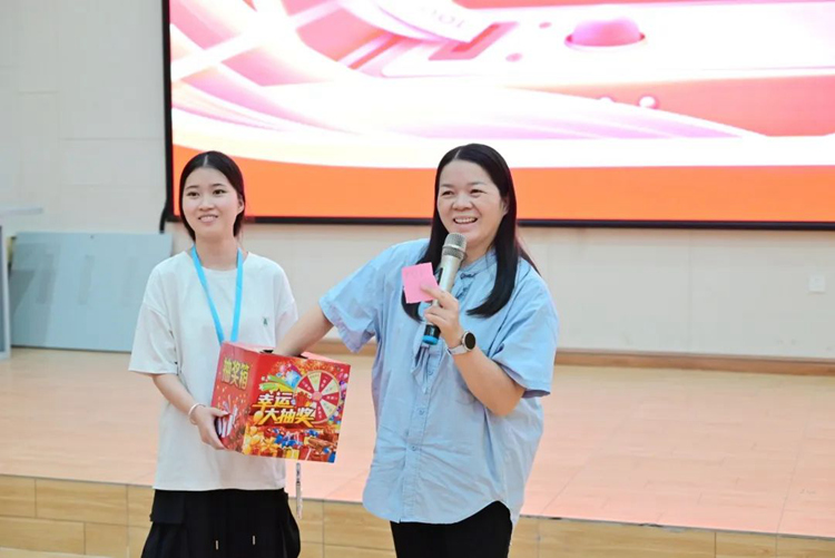 緊張而激烈的比賽環(huán)節(jié)結(jié)束后,大賽進(jìn)入了令人期待的抽獎環(huán)節(jié),增添了賽事的趣味性與互動性,營造了輕松愉悅的競賽氛圍。經(jīng)濟(jì)管理學(xué)院黨支部副書記潘翠萍和辦公室主任雷紅老師分別上臺抽取幸運觀眾,現(xiàn)場氣氛高潮迭起。