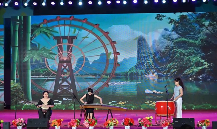 圖為古箏非洲鼓合奏《瑤族舞曲》(表演者:教育學(xué)院 莫彬彬、黃丹妮等)