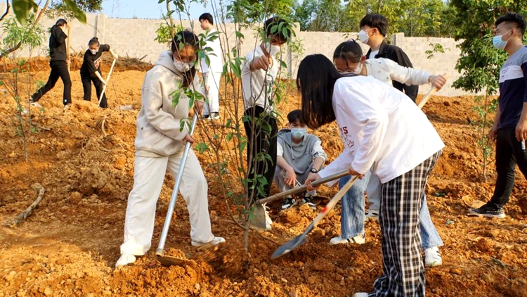 教育學(xué)院“薪火相傳獻(xiàn)禮建團百年,植樹護綠喜迎十五周年校慶”植樹活動