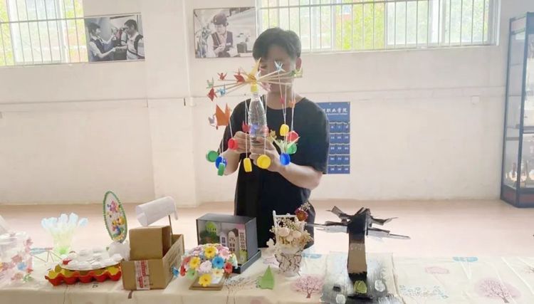 瞧!紙板箱、一次性筷子、塑料瓶、塑料袋、舊毛線等生活中隨處可見的廢品,經(jīng)過同學(xué)們的奇思妙想,被制作成盆栽、花卉、火箭模型、小房屋等各種各樣精巧的小手工,既能節(jié)約資源,促進(jìn)環(huán)保,而且還具有觀賞性、實(shí)用性。