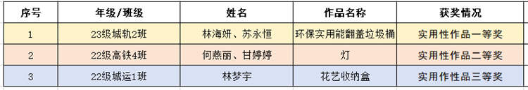 通過評比,“校園環(huán)保 變廢為寶”主題環(huán)保手工藝品制作大賽評出了一、二、三等獎(jiǎng)。