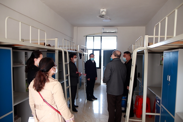 匯報(bào)會(huì)結(jié)束,賓正迎組長(zhǎng)一行詳細(xì)核查了學(xué)校2020年春季學(xué)期開(kāi)學(xué)準(zhǔn)備工作相關(guān)臺(tái)賬、資料,并實(shí)地參觀走訪了學(xué)校疫情防控物資儲(chǔ)備室、學(xué)生餐廳、集中醫(yī)學(xué)觀察點(diǎn)、學(xué)生宿舍、校醫(yī)室、教學(xué)樓等,深入了解學(xué)校疫情防控工作各項(xiàng)措施落實(shí)情況。