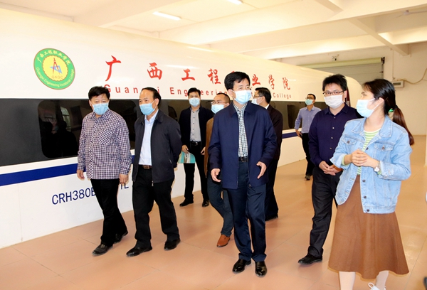 百色市委常委、統(tǒng)戰(zhàn)部部長羅試堅一行在我校黨委書記方仕英、紀(jì)委書記李益等校領(lǐng)導(dǎo)的陪同下,參觀了學(xué)校各二級學(xué)院實(shí)踐教學(xué)場所等,并詳細(xì)詢問教學(xué)管理、師資建設(shè)、招生就業(yè)等學(xué)校發(fā)展?fàn)顩r,深入了解學(xué)校2020年春季學(xué)期開學(xué)準(zhǔn)備工作情況。方仕英書記和李益書記分別對學(xué)校的建設(shè)發(fā)展、疫情防控和復(fù)學(xué)準(zhǔn)備工作進(jìn)行了介紹。