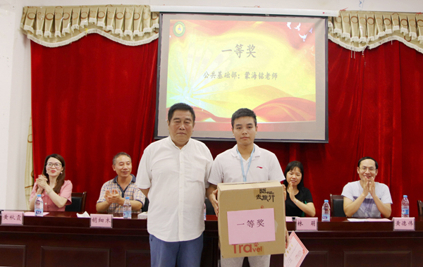 獲獎(jiǎng)教師代表蒙海銘老師發(fā)言,他感謝學(xué)校提供了這樣一個(gè)活動(dòng)平臺(tái),促進(jìn)和推動(dòng)了自己的專業(yè)成長(zhǎng);今后他將再接再厲,多與老教師、優(yōu)秀教師交流學(xué)習(xí),不斷提高自己的教學(xué)能力和水平,為學(xué)校的申本工作添磚加瓦,為學(xué)校的人才培養(yǎng)質(zhì)量上新臺(tái)階奉獻(xiàn)力量。