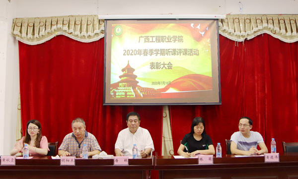 會(huì)上,校長(zhǎng)助理黃秋霞宣讀《關(guān)于表彰廣西工程職業(yè)學(xué)院2020年春季學(xué)期聽(tīng)課評(píng)課活動(dòng)獲獎(jiǎng)教師的決定》,蒙海銘等8名教師榮獲表彰。黃助理希望獲獎(jiǎng)教師戒驕戒躁,繼續(xù)努力,力爭(zhēng)今后取得更加優(yōu)異的成績(jī);希望全校教師以獲獎(jiǎng)教師為榜樣,潛心教學(xué)研究,積極探索教學(xué)內(nèi)容和教學(xué)方法改革,努力提高教學(xué)水平,為學(xué)校教育水平和人才培養(yǎng)質(zhì)量的提高做出新的貢獻(xiàn)。出席的學(xué)校領(lǐng)導(dǎo)為獲獎(jiǎng)的老師頒發(fā)頒發(fā)了榮譽(yù)證書(shū)和紀(jì)念品。