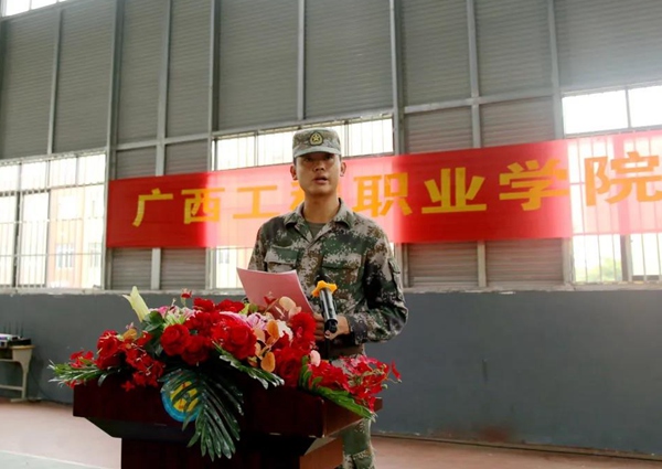 廣西工程職業(yè)學院附屬中等職業(yè)學校2020級道路橋梁施工技術(shù)班葉亮經(jīng)同學發(fā)言,他表示已經(jīng)做好準備迎接新的機遇和挑戰(zhàn)。同時也將珍惜此次鍛煉自我的機會,以昂揚的斗志、嚴格的紀律、團結(jié)的精神來迎接此次軍訓活動。相信同學們經(jīng)過此次軍訓一定能收獲一個更好的自己!