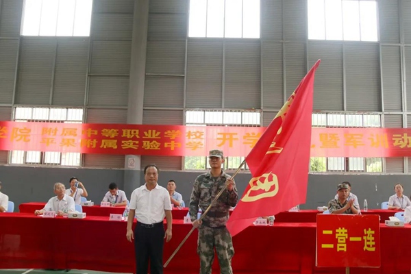出席儀式的領(lǐng)導嘉賓有平果大學園區(qū)管理服務(wù)中心羅永林主任,廣西工程職業(yè)學院董事長、紀委書記李益同志,副董事長、副校長林艷同志,彭高彬副校長,附屬中等職業(yè)學校吳先夏副校長,平果附屬實驗中學隆廷凡校長、施誠副校長、梁會珍副校長,廣西三軍國防教育基地王雪峰隊長,廣西三軍國防教育基地學生軍訓中隊李愉隊長,出席大會的還有學校各部門的領(lǐng)導同志。
