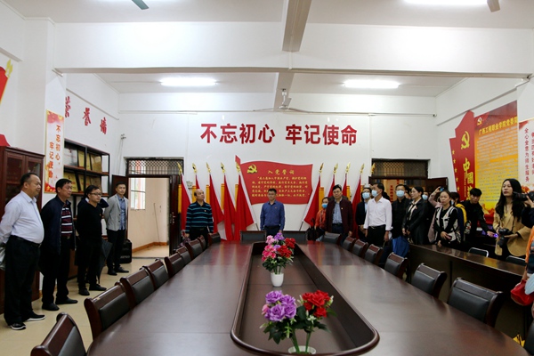 隨后觀摩團(tuán)前往我校藝術(shù)設(shè)計(jì)學(xué)院黨支部參觀黨員活動(dòng)陣地建設(shè)情況,藝術(shù)設(shè)計(jì)學(xué)院黨支部書記覃鳳姣向觀摩團(tuán)介紹黨費(fèi)收繳公開(kāi)情況、發(fā)展黨員情況、開(kāi)展三會(huì)一課情況以及黨員骨干培養(yǎng)情況等內(nèi)容。