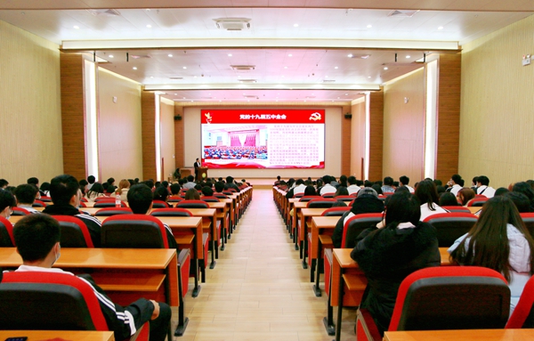 在場師生認(rèn)真聆聽學(xué)習(xí)黨的十九屆五中全會精神