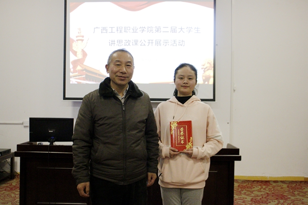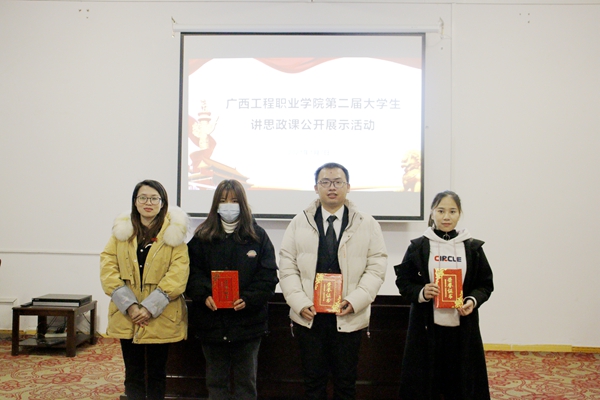 為全面推動(dòng)習(xí)近平總書記系列重要講話精神和治國(guó)理政新理念新思想新戰(zhàn)略進(jìn)教材、進(jìn)課堂、進(jìn)頭腦,充分發(fā)揮思政課在大學(xué)生思想政治教育中的主渠道作用,學(xué)校思政課教學(xué)部于2021年1月7日晚在圖書館學(xué)術(shù)報(bào)告廳組織開(kāi)展了廣西工程職業(yè)學(xué)院第二屆大學(xué)生講思政課公開(kāi)課展示活動(dòng)。